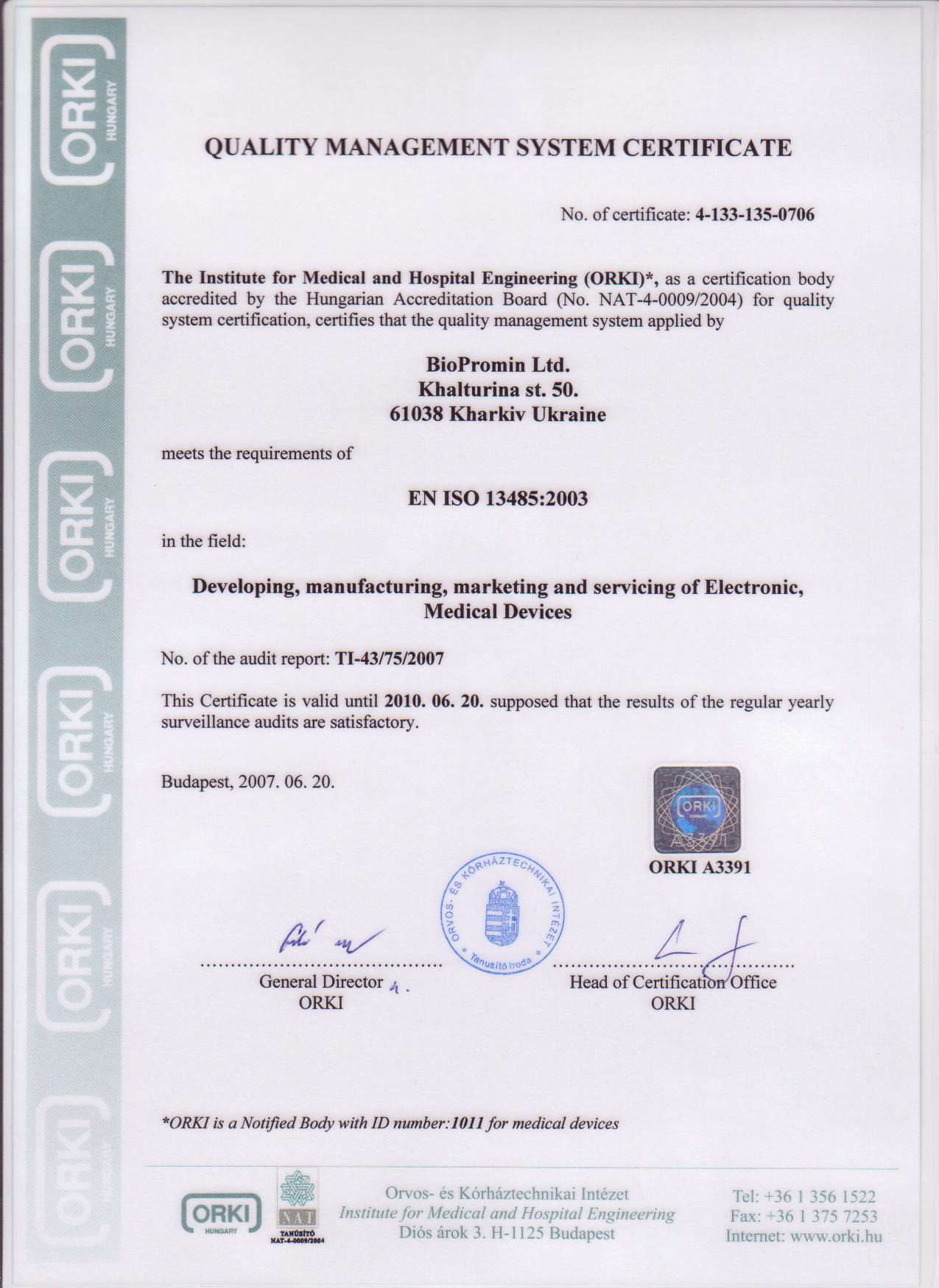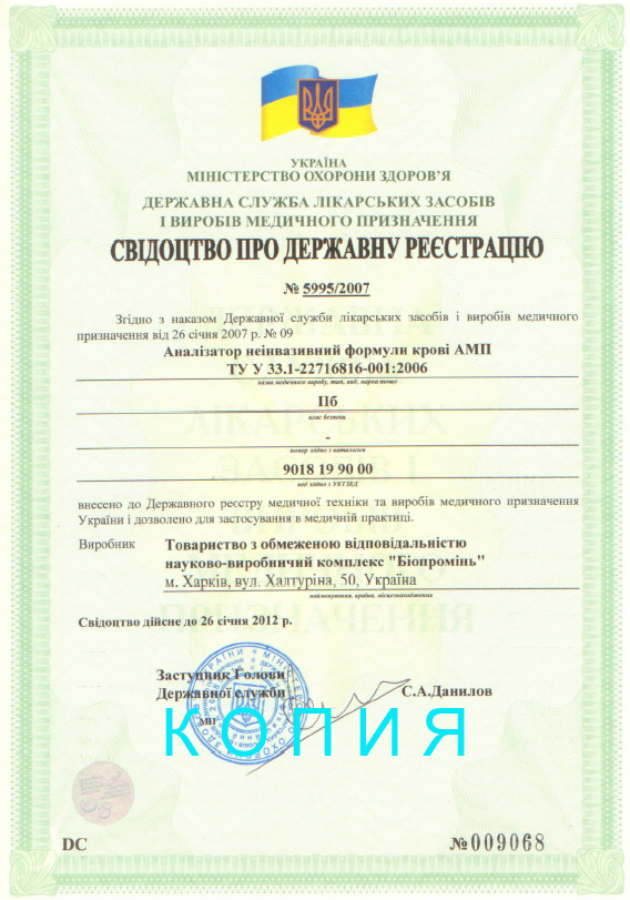 1. Сертификат Украины на АМП о внесении в реестр медтехники