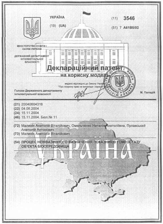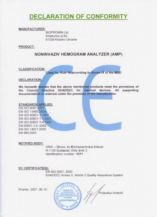 1. Прибор АМП не имеет аналогов в мире. Измерения производятся по методу Малыхина А.В. Сам прибор и метод измерения запатентованы несколькими патентами. Прибор АМП зарегистрирован в Евросоюзе, России и Украине.